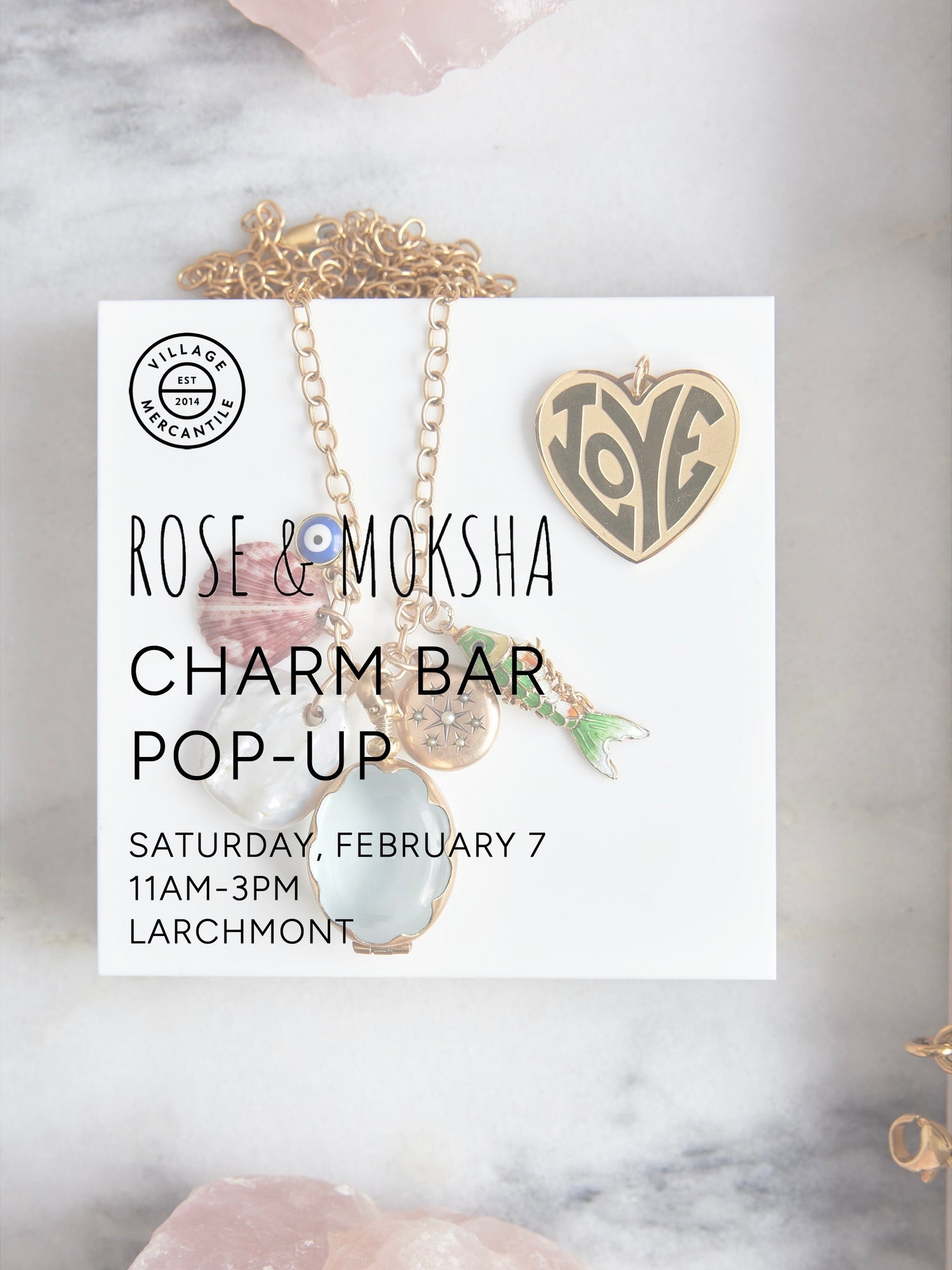 Mix and match a charm necklace for you or your Valentine at our Charm Bar Pop-Up by Rose & Moksha.