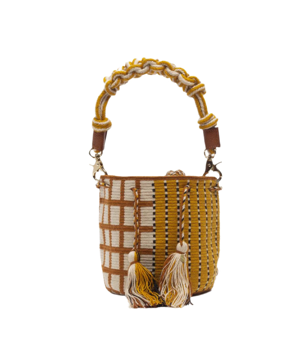 - The bag is made from high-quality materials and features an intricate macramé pattern on its short handle. Its crossbody design allows you to wear it over the shoulder or across the body.