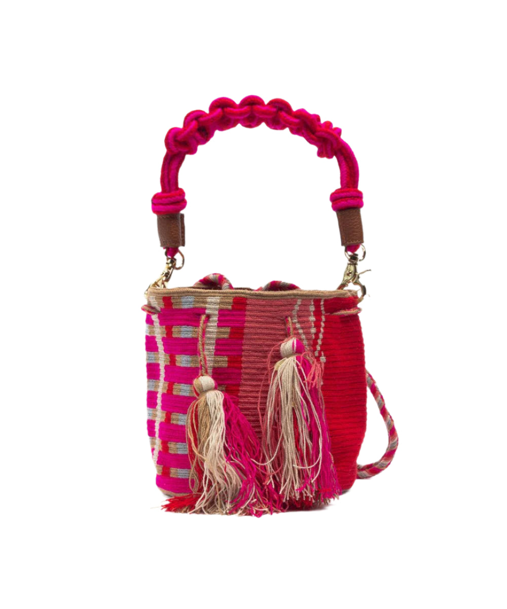 - The bag is made from high-quality materials and features an intricate macramé pattern on its short handle. Its crossbody design allows you to wear it over the shoulder or across the body.