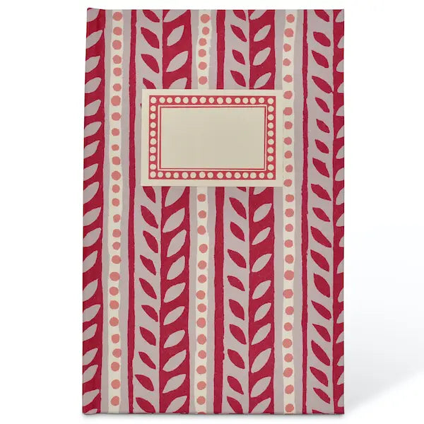 - 80 pages of lined cream paper, sewn properly and bound into a slim, light hardback notebook, covered in patterned paper, that opens completely flat