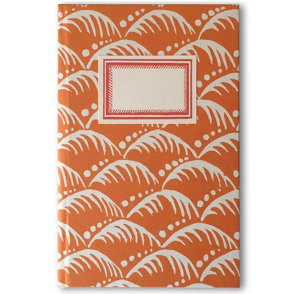 - 80 pages of lined cream paper, sewn properly and bound into a slim, light hardback notebook, covered in patterned paper, that opens completely flat