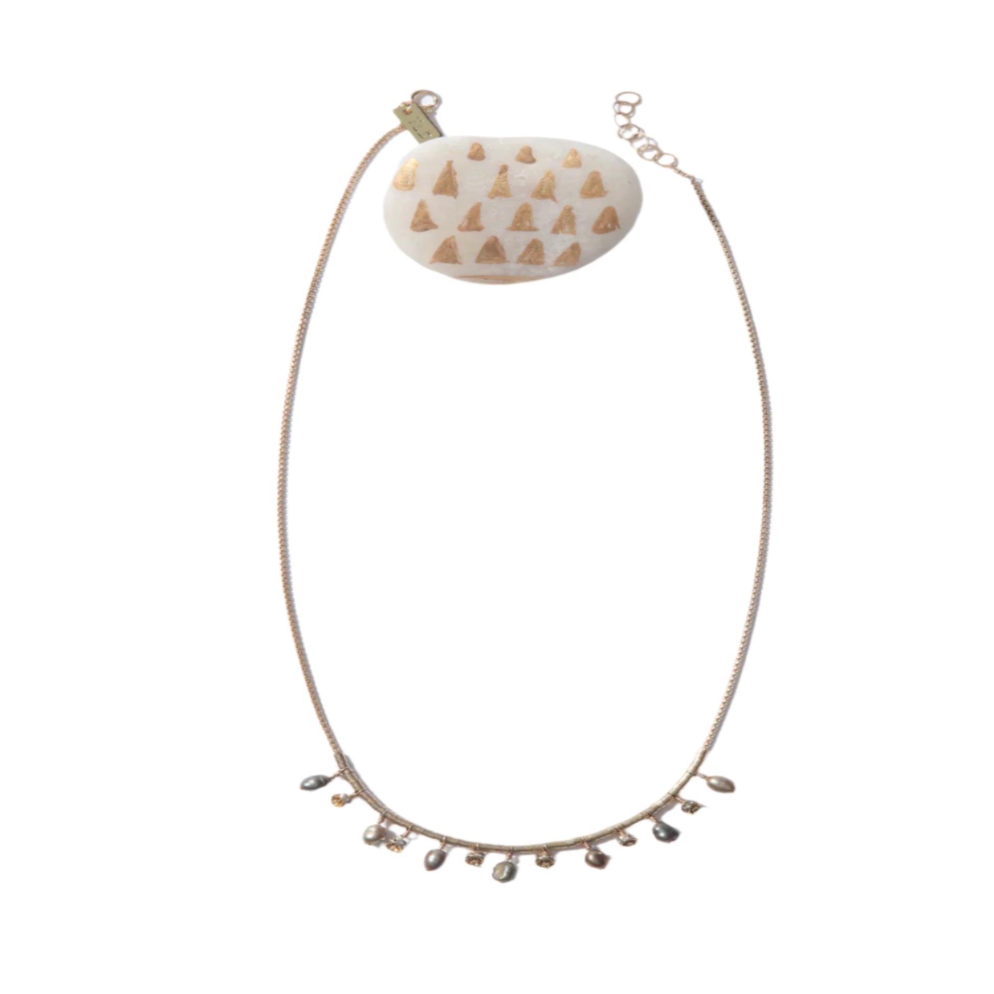 - Pearl and crystal charms, gold filled beads on gold filled chain.