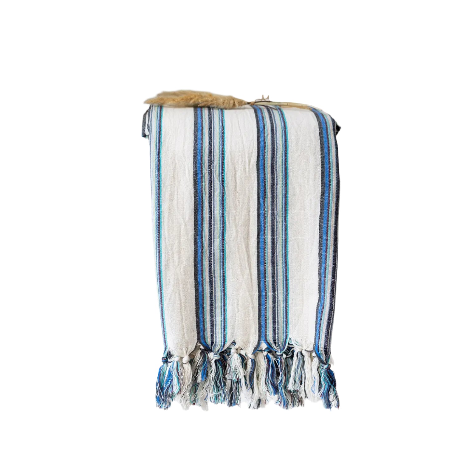 Rustic Vintage Blue & Black Stripe Fouta Towel