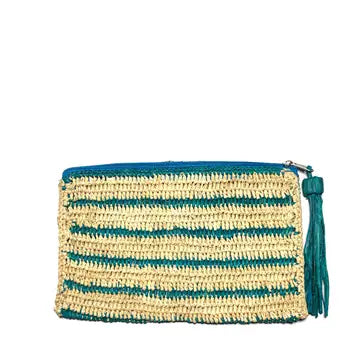 Striped Raffia Pouch – Teal Stripe