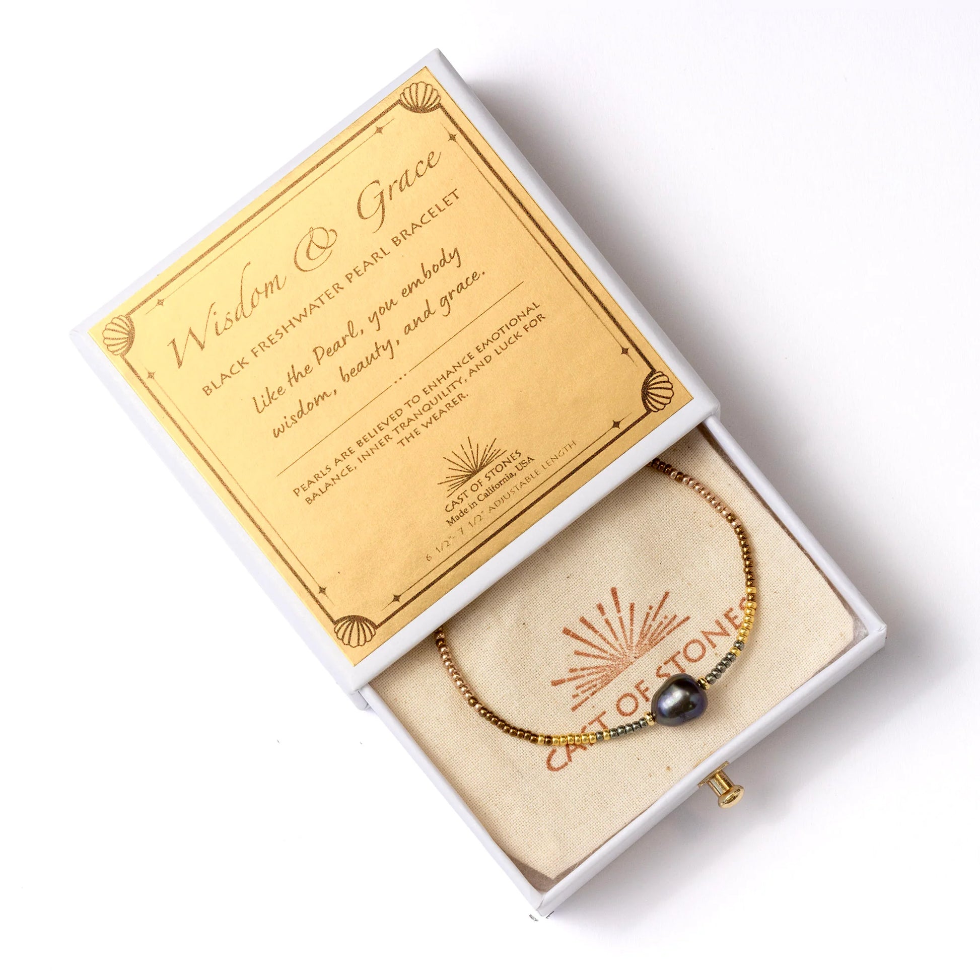 - The Wisdom & Grace freshwater pearl bracelet is perfect for gifting as it arrives in a prepackaged gift box with a meaningful greeting.